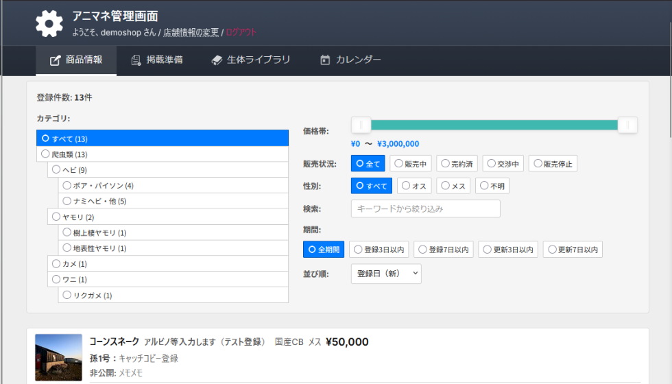 爬虫類・両生類・鳥類・魚類・哺乳類・虫 各種対応!Webサイト・値札・帳簿の作成から販売管理まで。CITES・特定動物にも対応!