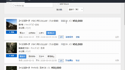 生体売約後は画面操作で販売日・実売価格・購入者情報・支払方法等を追記可能。データを一元管理することでミス・漏れを削減!