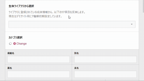 学名・成体サイズ・平均寿命などの基本情報はあらかじめ用意した辞書機能から呼び出すだけで簡単登録!手間になりがちな入力業務を効率化!独自の辞書登録にも対応しています。